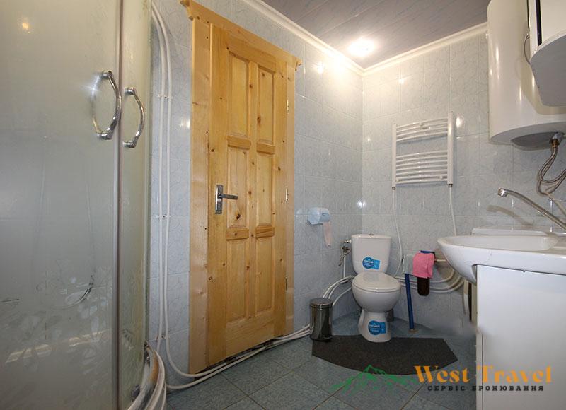 На першому поверсі — санвузол (душова кабіна, туалет, умивальник).