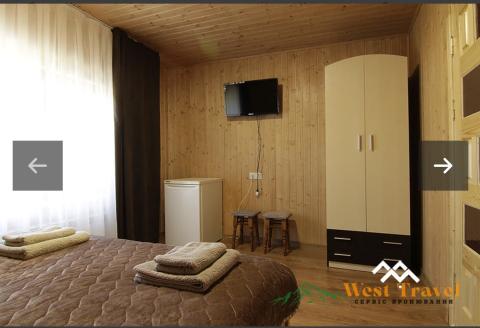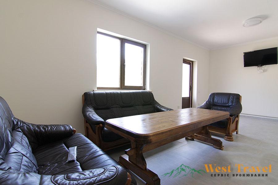 Сімейний — двоспальне ліжко, розкладний диван, телевізор, холодильник; санвузол (ванна, туалет, умивальник, фен).