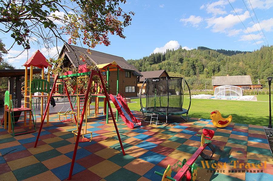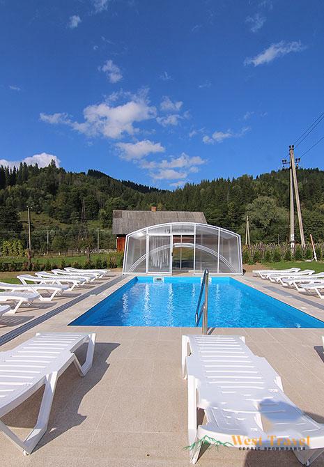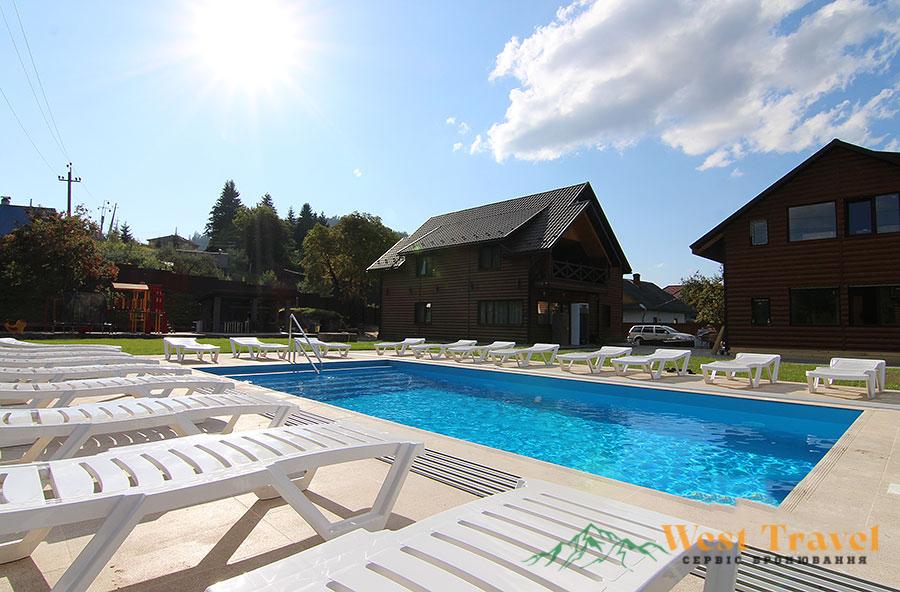 На закритій облаштованій території розташований триповерховий будинок на 8 номерів (18 місць), сауна з кімнатою відпочинку, соляна кімната, чан, плавальний басейн з підігрівом, дитячий майданчик, батут, альтанка з мангалом також на території є Бар-ресторан тiльки для жильцiв. . Не далеко знаходиться Памiр. Озеро Буковинське око. Декiлька водоспадiв.